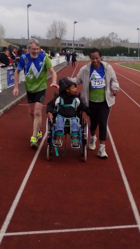 Au boulot, on s’inscrit, on commence à courir chacun chez soi pour assurer le jour J, aucune notion de performance, on reste dans la découverte et le partage. On continue de courir sans fauteuil car nous n’avons pas le matériel adapté mais nous ferons participer nos protégés à l’arrivée sur le stade. C’est tout ce que nous pouvons faire pour l’instant … mais nous le faisons et c’est ce qui compte.