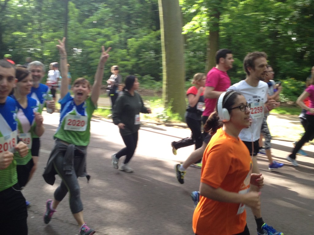 Là, nous sortons des stades, un peu comme les foulées de Vincennes, mais la dimension solidaire est plus présente par des stands, des animations, une ambiance sans notion de performance. Courir juste pour le plaisir et pour aider. On progresse.