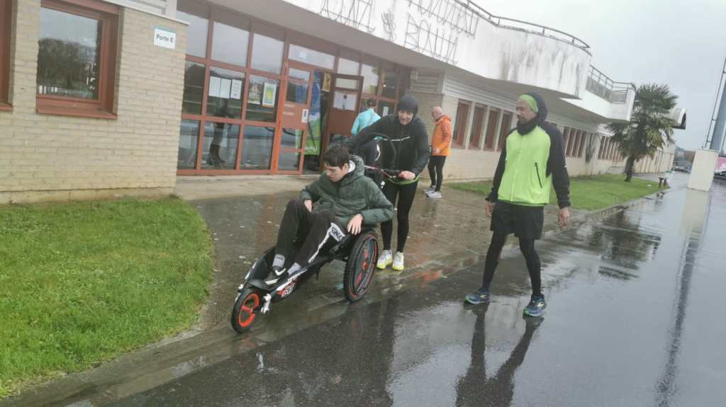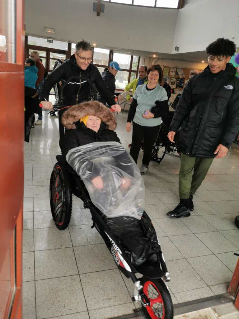 Un moment chaleureux de partage (dans les cœurs et non grâce à la météo 😅) où les membres de l’association Courir pour Marie ont eu le plaisir de faire découvrir les joelettes et les fauteuils hippocampes.