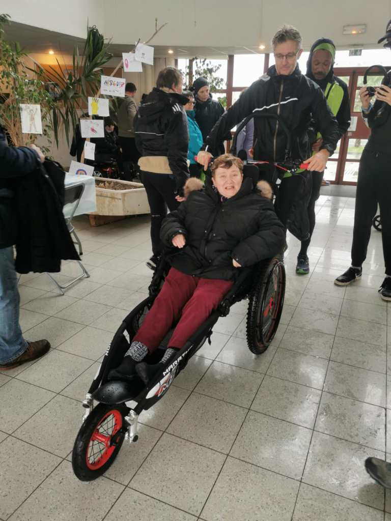 Je m’explique, 10 adhérents de l’association Courir pour Marie ont proposé, à l’aide d’un fauteuil hippocampe et d’une joelette, une initiation à ces 2 véhicules adaptés PMR (Personne à Mobilité Réduite).
